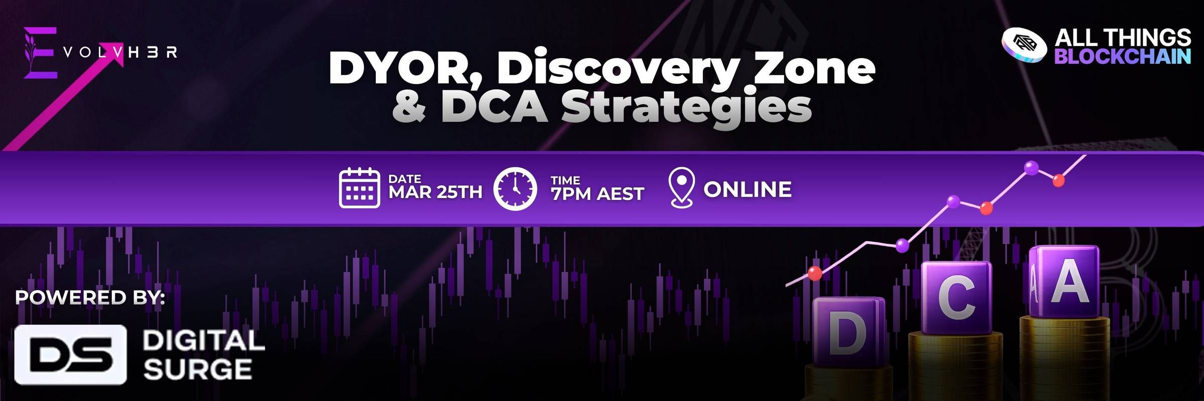 This educational webinar with Digital Surge focuses on responsible research and long-term participation strategies, combining foundational education on DYOR principles with practical insights into Dollar Cost Averaging (DCA) and asset discovery tools.